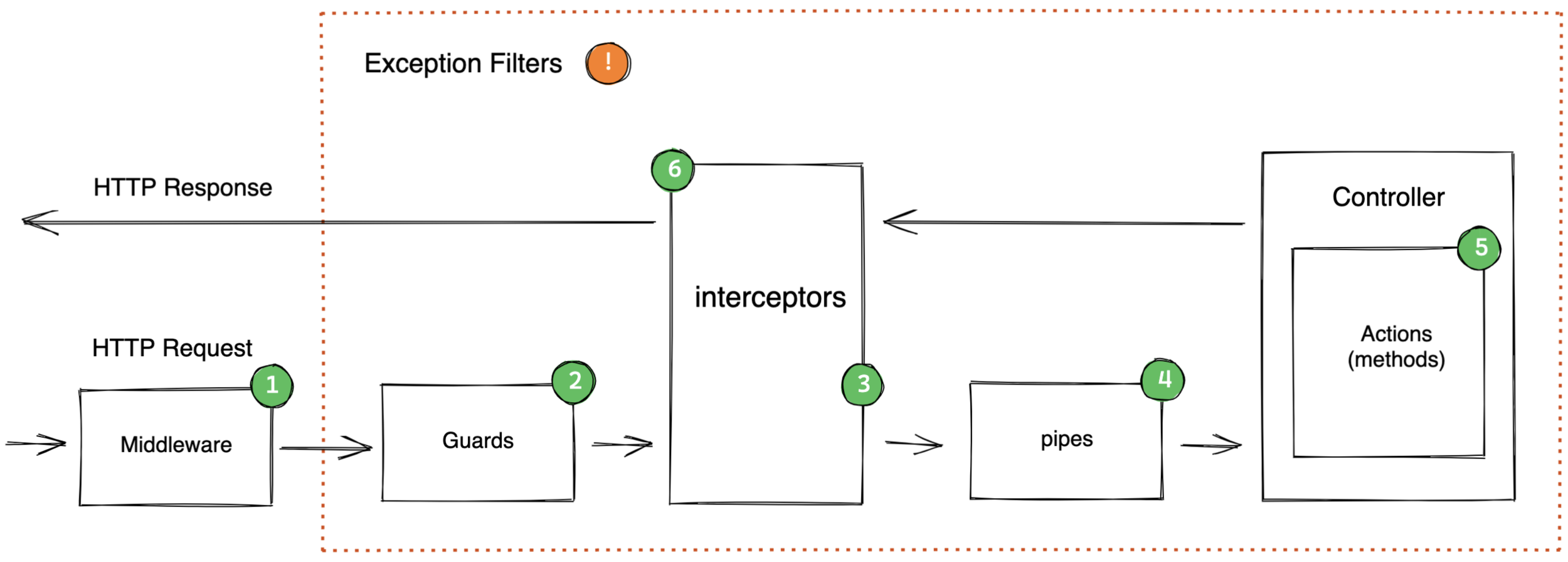 - 위치: 인터셉터와 라우트 핸들러 사이